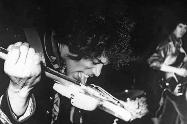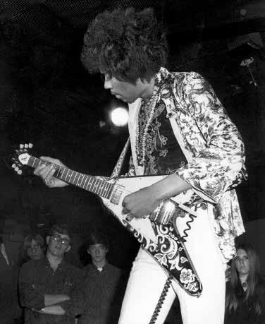82-83 Featured here is a classic image of Hendrix playing the guitar with his tongue, a trick he picked up early in his career, when he played in the venues making up the Chitlin’ Circuit in the Deep South.