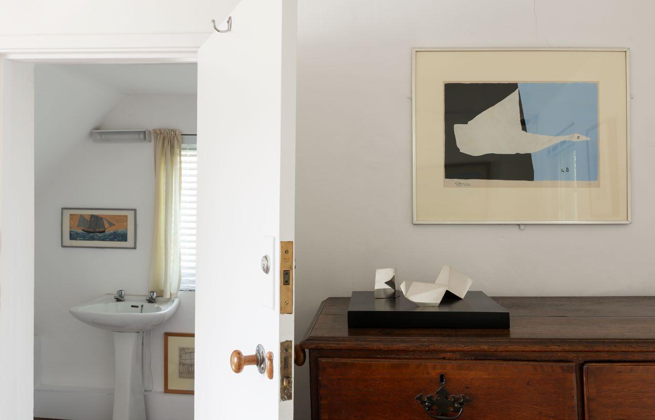 As the Martin-Owers extension neared completion in late December 1969, Jim Ede wrote in eager anticipation of the arrival of artworks into the space. ‘I should start placing everything in a week or two – the ground floor is promised for the 31st but I can’t believe it’, he noted. He spent a few days ‘living on the first floor’ of the new building, after which, he wrote, ‘I begin to see my way towards a unity’. As well as Windsor chairs and eighteenth-century armchairs, works by Ben and Winifred Nicholson, Christopher Wood and Henri Gaudier-Brzeska were moved across from the cottages to the extension. Jim Ede delighted in the increased wall space, which gave him an opportunity to present a large proportion of his substantial collection of paintings by Alfred Wallis, who Jim Ede never met but corresponded with frequently. Ede recieved parcels of Wallis’s paintings in the post, priced by size, from which he would make a selection to purchase, and return the rest.