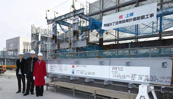 For the Ginza Place project, Klein Dytham architecture (KDa) members were invited, along with construction engineers, to sign the building’s final beam before it was hoisted in place by a ceremonial red-andwhite braided rope. As a final touch, the beam was installed with gleaming gold-plated bolts. Such details may never be seen by the public, but they lie within buildings for posterity like secret commemorative plaques.