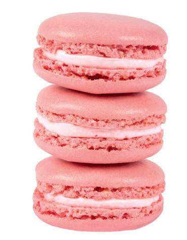 Strawberry red, classic almond shell, strawberry-mint jam filling