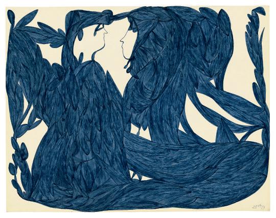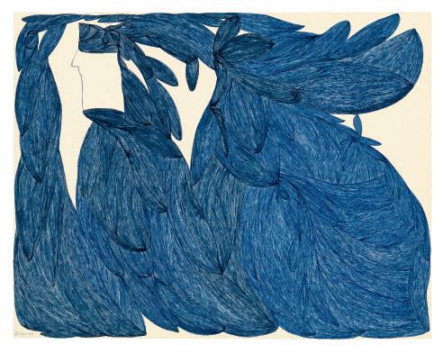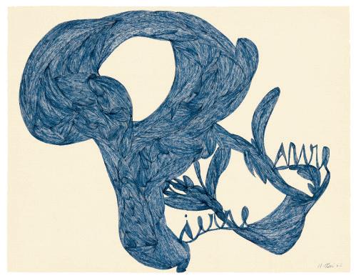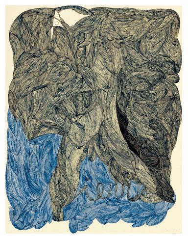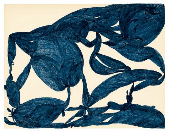 encre noire et bleue sur papier blue ink and graphite on paper
