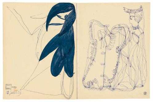 sans titre (cahier n° 1) untitled (sketchbook no. 1), de mars à avril March–April 1938 encre bleue sur papier blue ink on paper 31,5 × 48 cm (ouvert open) cab-1955