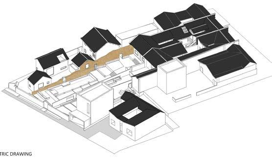 Fig. 7.15. Design. Axonometrical view of the design for the radial strips morphotype, including the backyards of Dang and Meng Courtyards, adjacent courtyard buildings and the unique 'seal type' house.