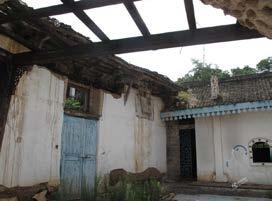 Fig. 4.75. On the left of the concretebrick structure, the main hall of the Erlang Temple (that now is collapsed) can be seen from the road behind the backyards of the southern courtyards of the Old Street, looking eastward (March 2009).