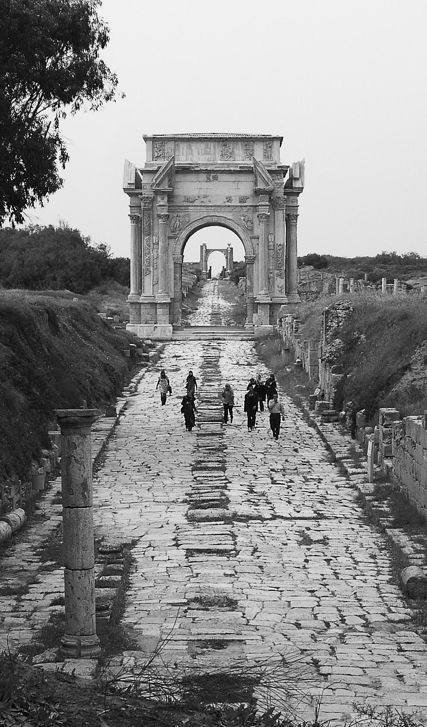 Leptis Magna is the most impressive ancient city in Libya and one o f t h e g r e a t e s t c l a s s i c a l s i t e s i n N o r t h A f r i c a . I t s c h e q u e r e d history and its evocative ruins are sure to leave a strong impression on any visitor. If time is very short it is possible to see the ruins on a day trip from Tripoli. It would be far better, however, to take your time and spend a couple of days getting to know the ancient streets and buildings. There are, in addition, several interesting towns to explore en route from Tripoli to Leptis, and beyond Leptis to the east.