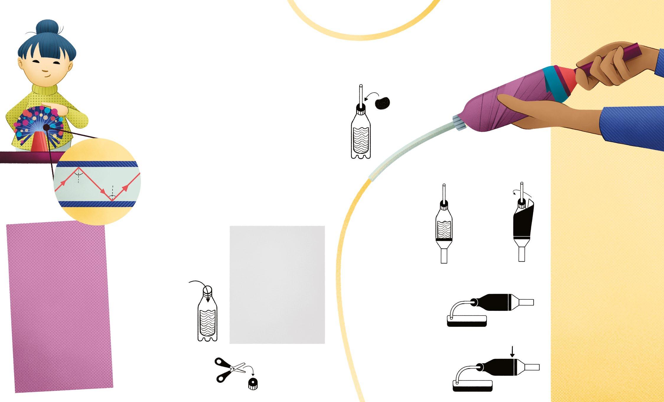 Turn off the light, position the bottle as shown in the illustration, then pierce tthe bottom of the bottle with the drawing pin. The water will start to come out of the tube