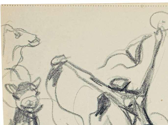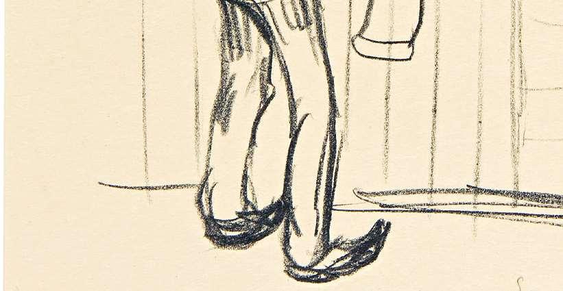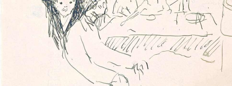 Asanartistbom andlivingin Norway,Terje Nicolaisen(b.1964)was raisedon Munch'sartsotospeak. Inhisnativecountry Munchisseen asakindofnationalsaint; thisnaturallyaffects Nicolaisen'srelationshipwithhim,andinmanydifferentways.In Nicolaisen'sartthereisa consistenthumoristicandunpretentioussidewaysglanceatlifeand theartworld,onethatacceptsimperfectionandfailure. Drawingisa centralpartofhisoeuvre, whichisalsoevidencedbynumerousartists'books, multiples, andideasforunrealised projects. HeisamemberoftheartistgroupTegneklubben(the DrawingClub),comprisedof fiveartistswhosince2004havecometogetherforcollectivedrawing seanceswheretheycultivatethespontaneityandfallibilityinherent inthemedium.Abouthisrelationshipwith Munch, Nicolaisenhasthe followingtosay: "l'dsaythatwhere Munchand Imeeteyetoeyeis wherehestumbles,althoughthetwoofusstumbleindifferentways. Inhiscase,it'sadeliberatetactictooutwithisinherentskilfulness, anditottenworks."Inkeepingwiththis, Nicolaisen'sselectionencompassesdrawingsby Munchwherehedoesnotappearasthefamiliar master.lt'salmostasthoughweareontheinsideofthemaskandcan senseMunch'shumanandnakedordinariness.