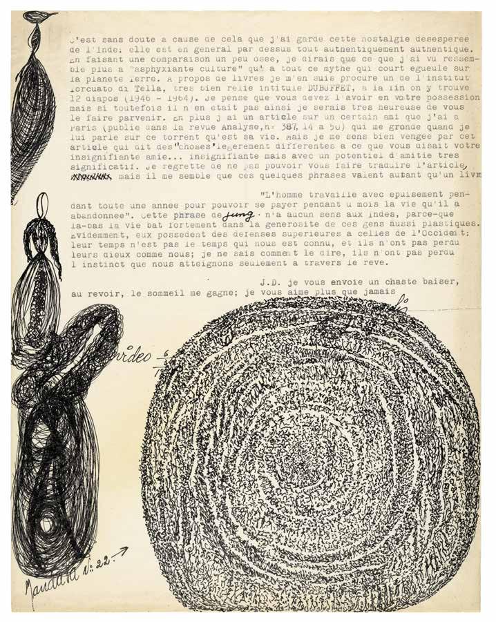 Lettre de Magalí Herrera à Jean Dubuffet, El Alma del Hijo («L’âme du ls»), Paris, le 22 juin 1968. Lettre rédigée sur un poème de Magalí Herrera (traduction à la p. 44),