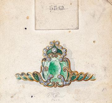 FIG. 159 Design drawing with carved Indian emerald, “Brooches, Pendants, No. 1,” image 77. Courtesy Dartmouth Libraries