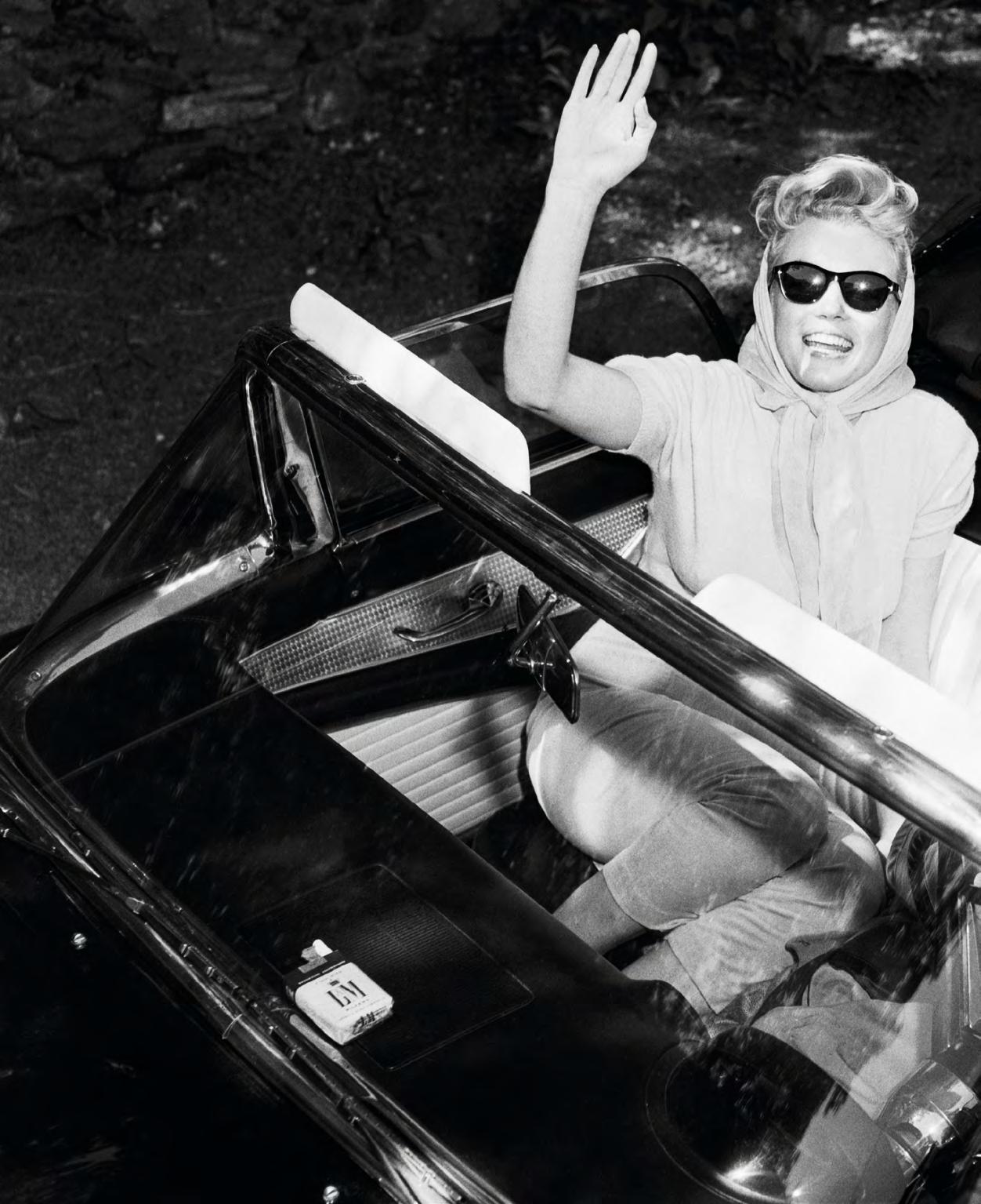 Styled by American Vogue’s fashion editor Babs Simpson, the black, backless Dior dress was chosen to help distinguish the iconic image Stern eventually took. The final shot shows Marilyn looking as refined and resplendent as an English princess. Moreover, with her signature white-blonde locks swept back by the famous hairdresser Kenneth Battelle, known to his friends and clients simply as Mr Kenneth, Monroe appears insouciant and blasé of the high-profile magazine editorial set-up that day at the Hotel Bel-Air in California. What comes across on camera is Marilyn’s innate ability to intuitively inhabit the clothes she wore, to make them her own. A decade earlier, she accessorised her preferred Dior suit with red roses, sometimes real, sometimes fake, because she loved flowers. She didn’t need a Vogue editor to dress her because she knew what made her look good.