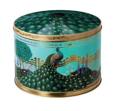 Highgrove Gardens is o ering a range of Emma Bridgewater ceramics titled 3 Cheers for King Charles featuring the date of the coronation and a wrap-around crown design. e range is made at the Emma Bridgewater factory in Stoke-on-Trent from cream-coloured English earthenware sourced from clay in Devon, Cornwall and Wales. Meanwhile, Fortnum & Mason’s range includes a musical tin that plays God Save e King as it spins.