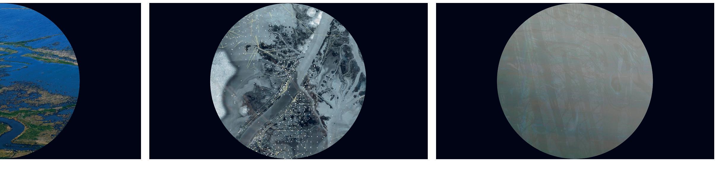 In the CRMS map, the data layer that tracks vegetation, once clicked on, visualizes color-coded layers onto the map that mark the soil composition as salinized, brackish, freshwater, swamp, water, and other. These areas coincide with the sites of CRMS stations. When zooming into the area known as Death Alley or Cancer Alley—named so because of the amount of toxins produced through the petrochemical companies that inhabit the landscape along the Mississippi River between Baton Rouge and New Orleans—one sees blocks of bright yellow that encase the entirety of the length of the river and its tributaries. The bright yellow color marks the areas of vegetation known as other on the map legend or, in other words, unknown. Like a neon marker, which, instead of highlighting signals a redaction, this area of “other” vegetation marks blind spots of data on the map that coincide with a lack of CRMS sites along this stretch of the Mississippi River. In an otherwise informatically comprehensive form of environmental media, what is