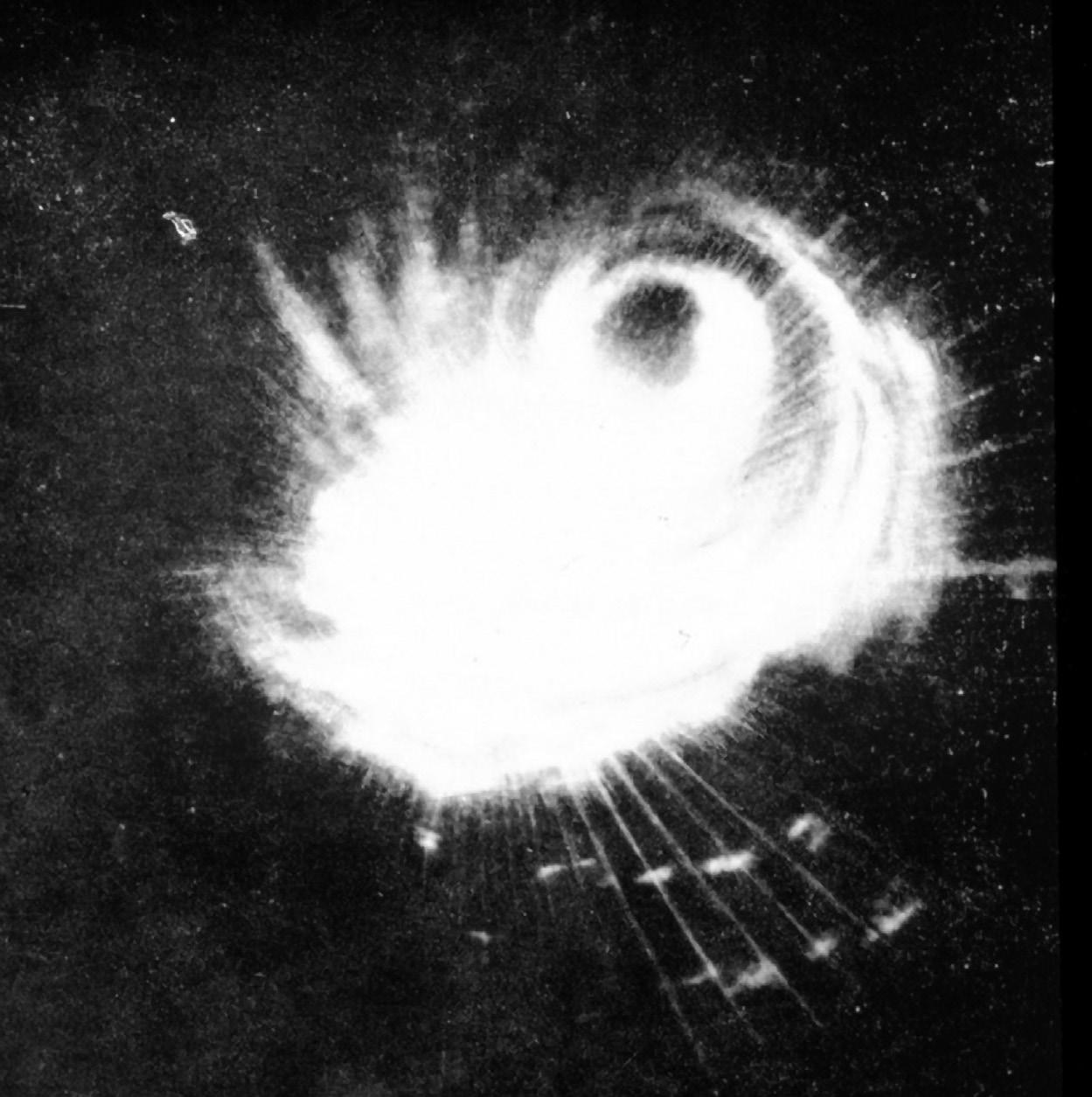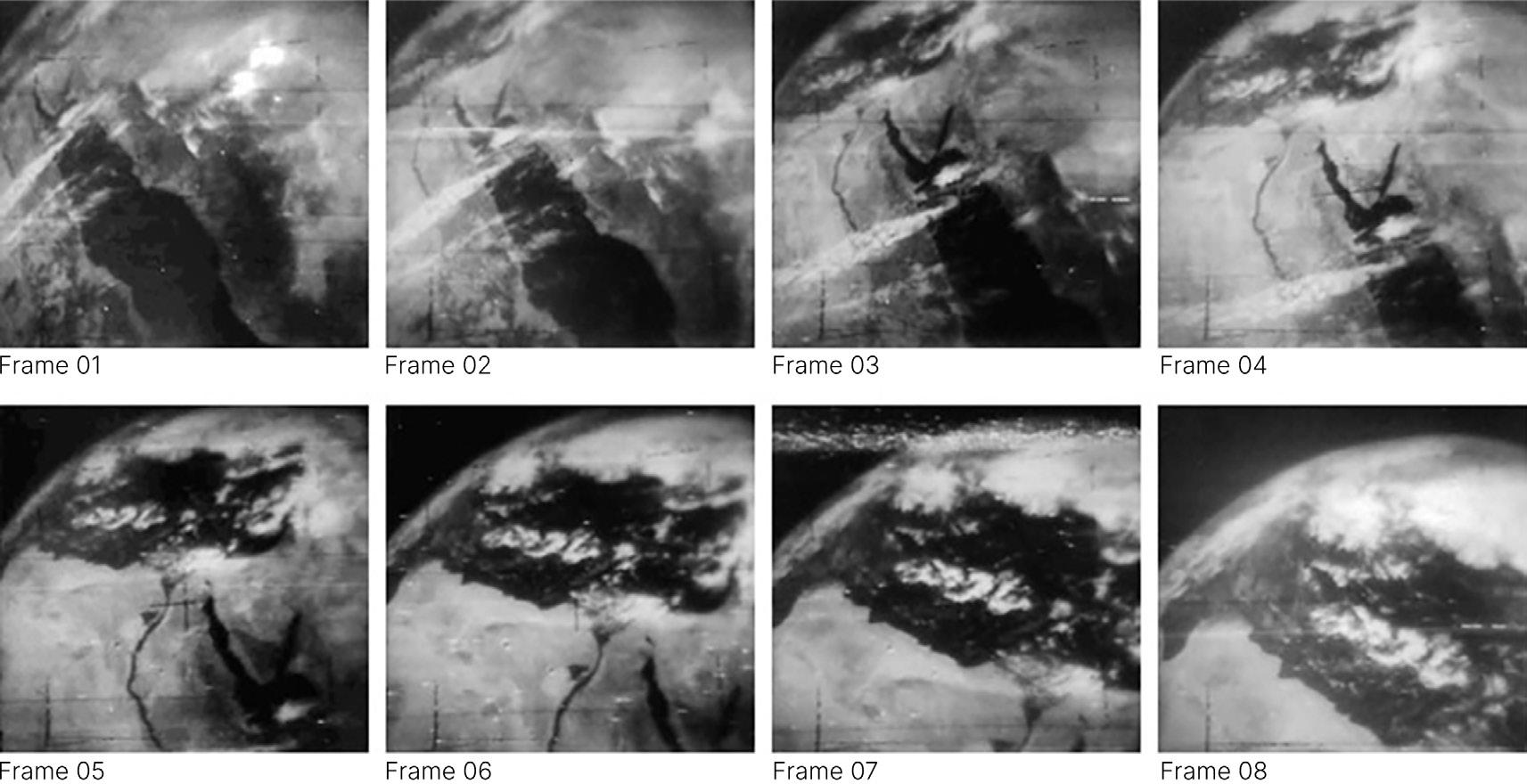 Time series of a typhoon captured by a US Navy ship’s radar, 1944. This storm was the first tropical storm to be observed on radar.