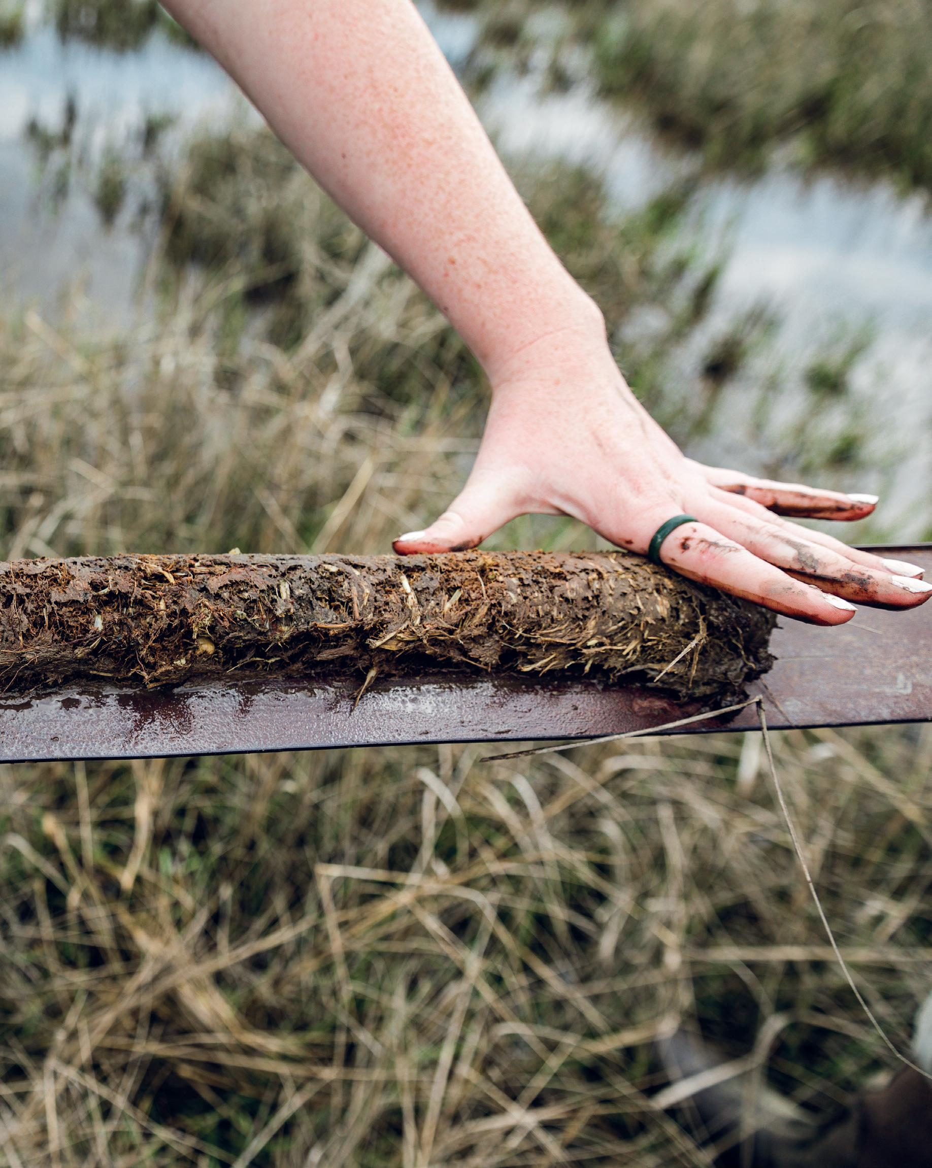 Soil can store centuries’ worth of the carbon absorbed by marsh plants. This core sample from Virginia’s Goodwin Island reveals when drier land transitioned to marsh.