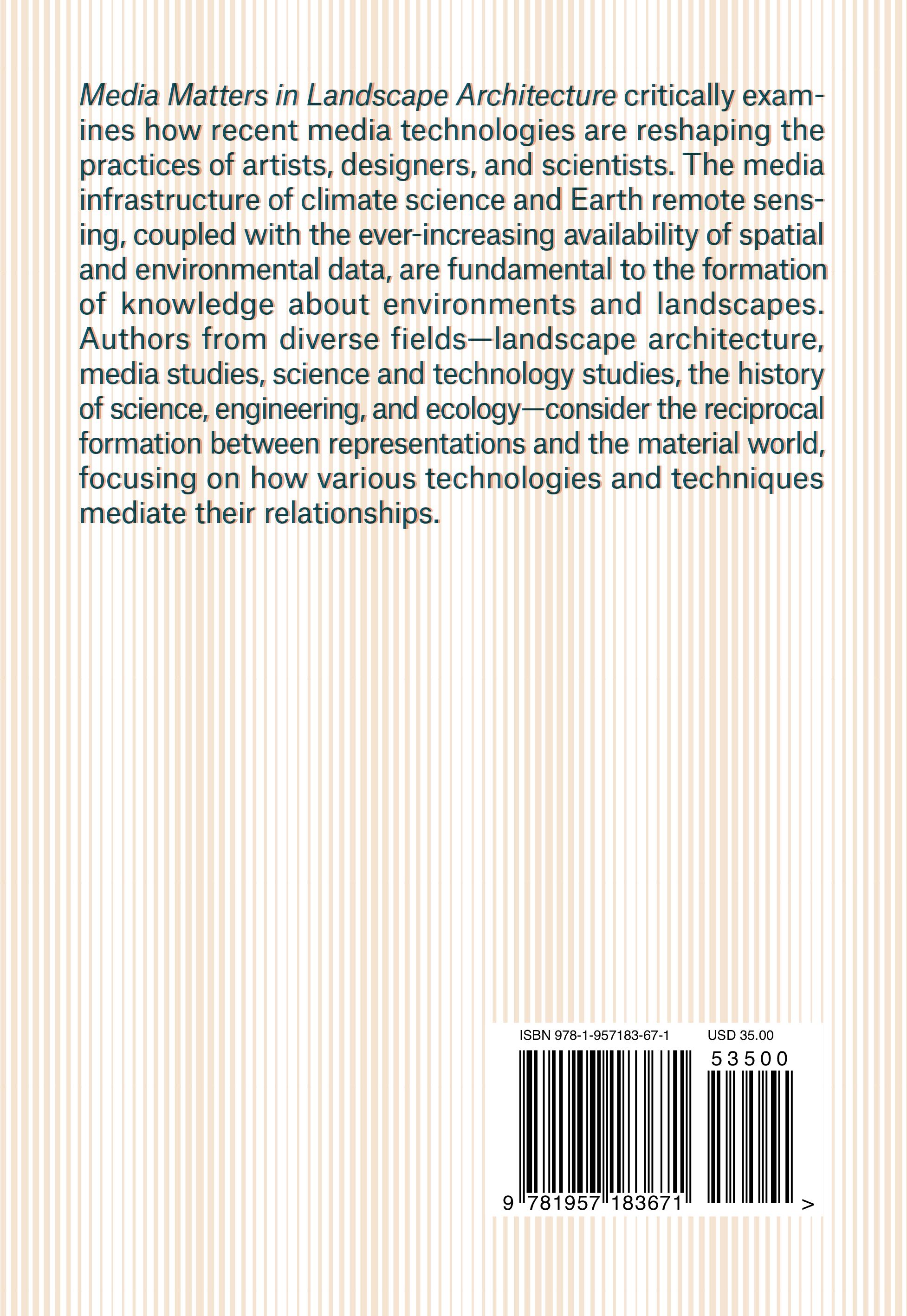 Media Matters goes behind the scenes to consider how media technologies that have emerged in recent decades are reshaping the practices of artists, designers, and scientists. The media infrastructure of climate science and Earth remote sensing, coupled with the increased availability of spatial information and modeling software, provide the context for many of the chapters that follow. Many of the practices and projects are geospatial in nature, where the media and methods employed are designed to capture phenomena that are not directly visible to human perception and where