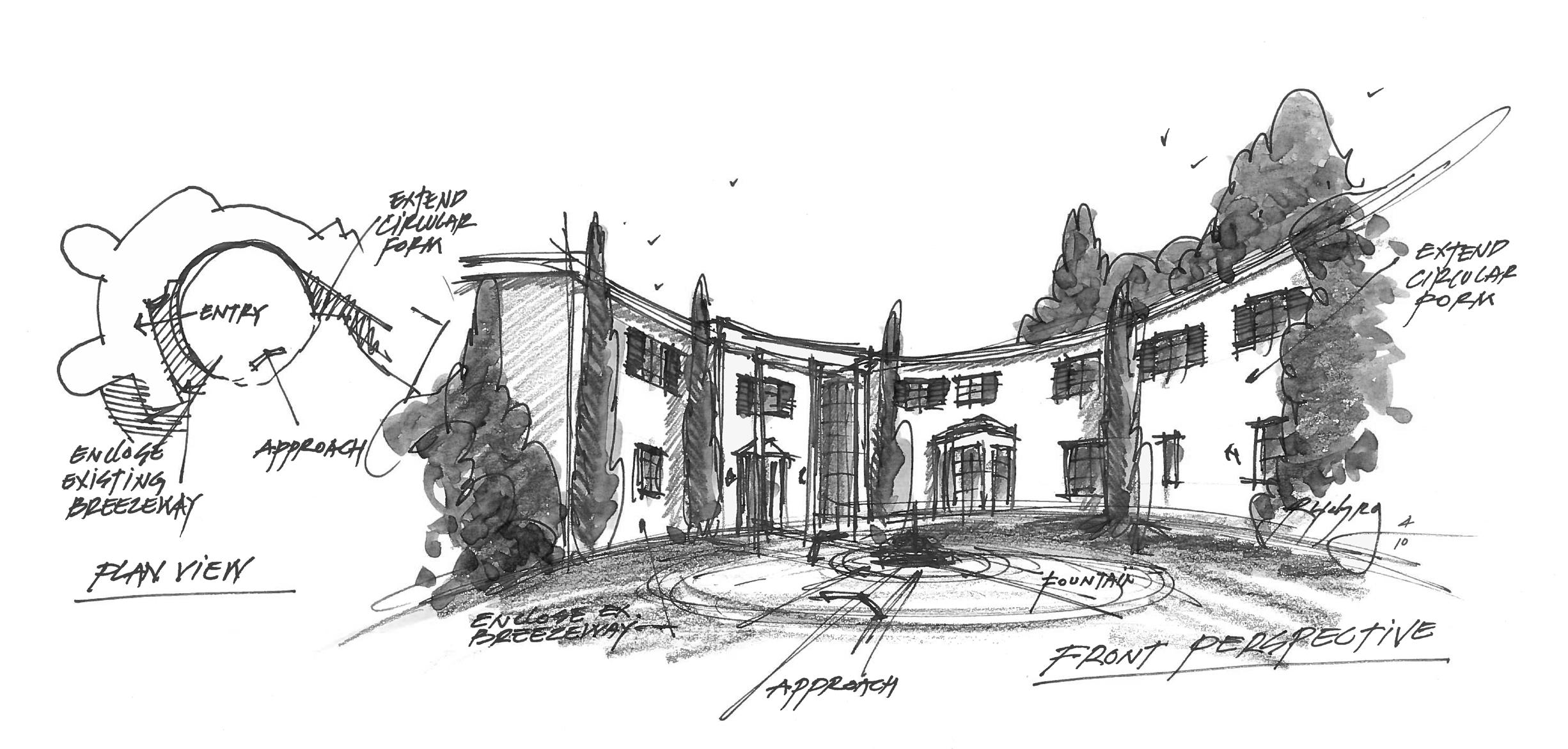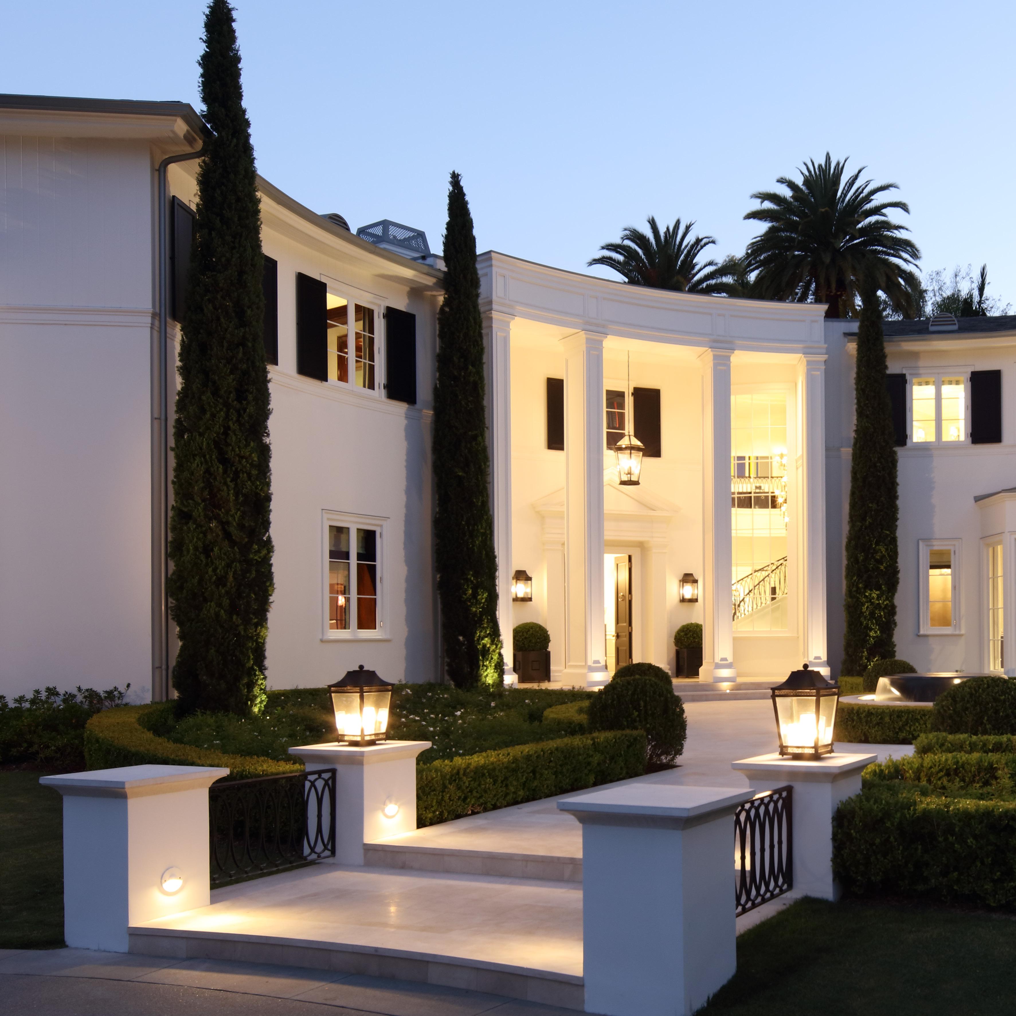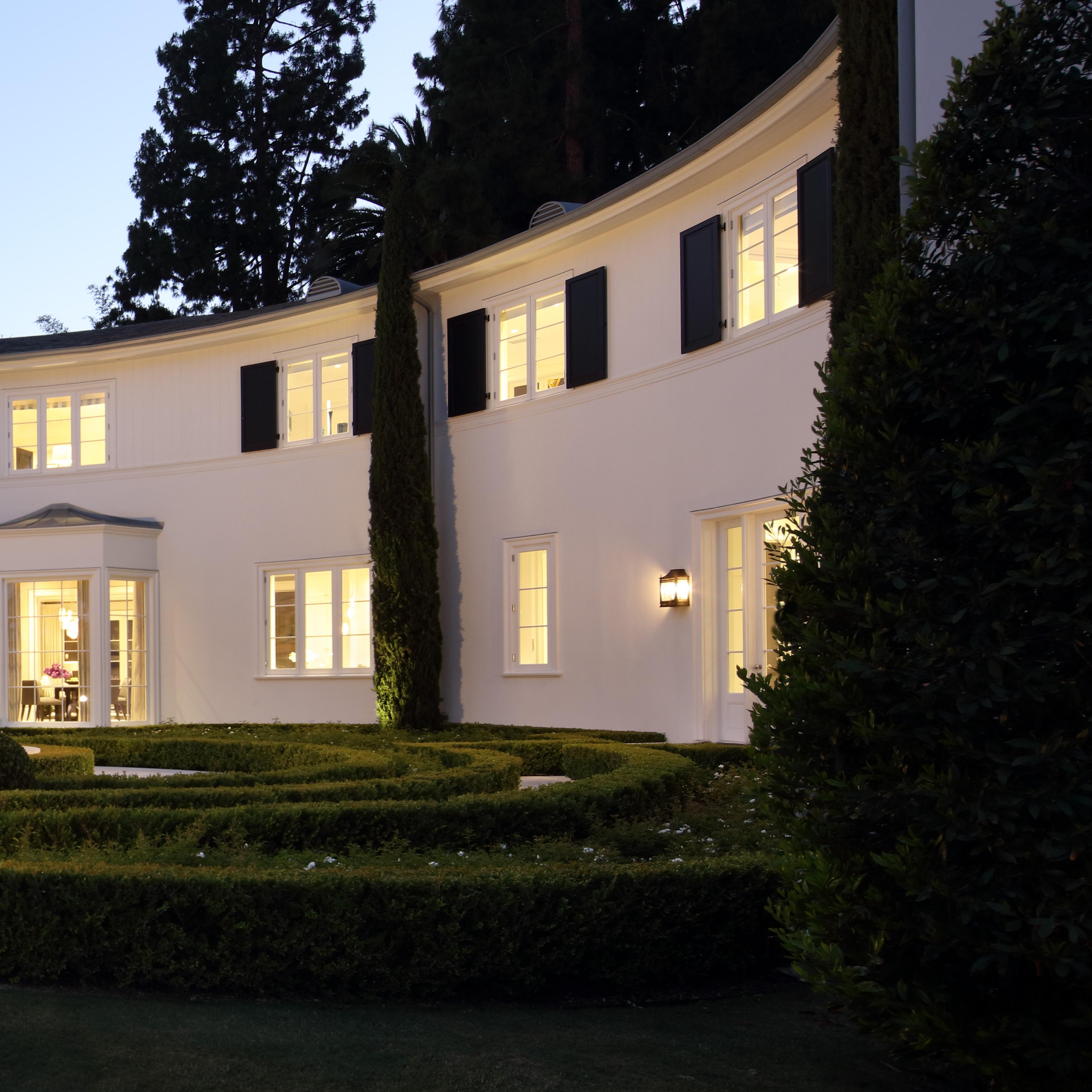 The request was a unique one for Landry Design Group: to renovate an original house in a Los Angeles canyon by respected architect Paul Williams. Before approaching the firm, the clients had lived in the house for several years and fully understood its benefits and drawbacks, which gave them a clear sense of what the renovation should entail relative to their lifestyle. They wished to retain the home’s Hollywood Regency bones and semicircular flow, but needed to add a new master suite and larger bedrooms for their children, as well as introduce a family room that better related to the more formal living and dining rooms. The firm answered with a cohesive layout that resulted in a more pronounced interpretation of a circular plan, plus an expanded garage that would connect to the house, a subterranean home theater and wine room, a new pool house, an upstairs gym with its own terrace, and, on the ground floor, a grand covered loggia.