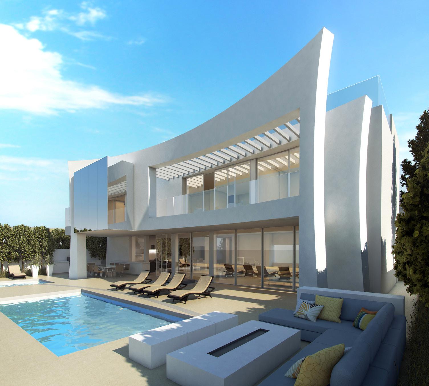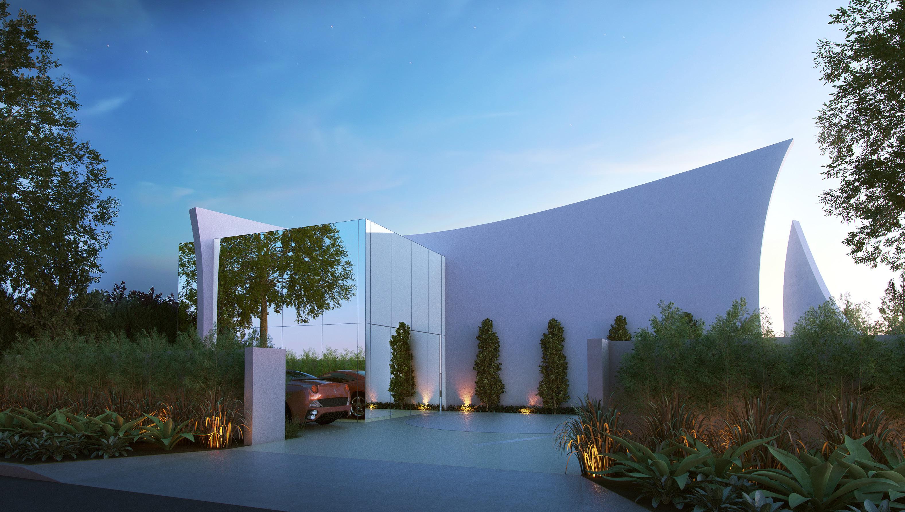 The great arc walls of sculptor Richard Serra provided a point of inspiration for the development of the forms that cut through the Samson Beach House in Malibu, a remodel of an existing oceanfront home. From the street, its effect is immediate: a cube covered in reflective glass (the garage) punches through the colossal main plane, creating interest on arrival. A second reflective cube intersects more planes on the ocean side, and a third cube housing the entrance, made of transparent glass, disappears into another curve. On the rear façade, a curved plane breaks away from the house, its sense of movement resembling a sail carried by the wind.