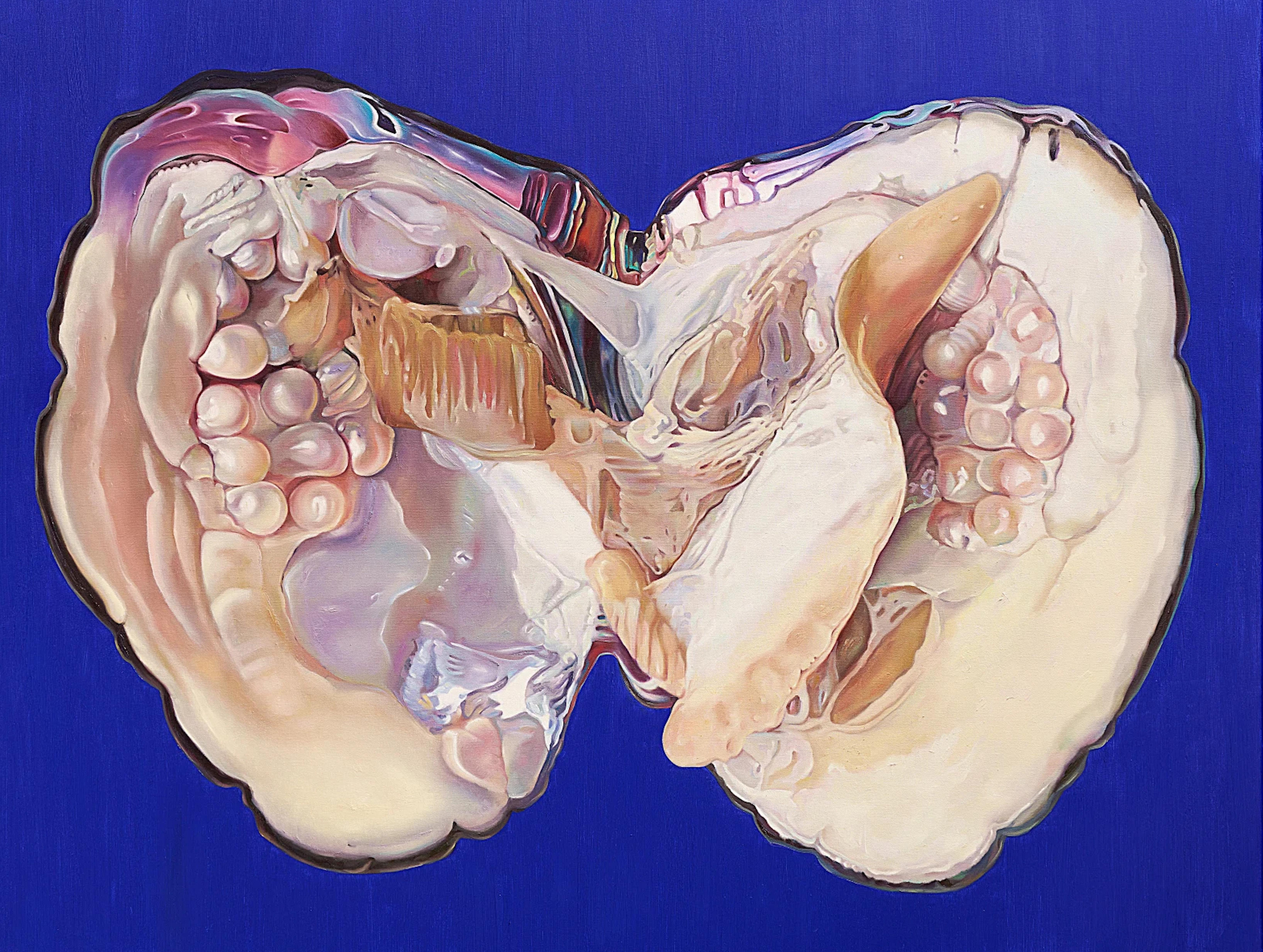 CHRIS JORDANSunset, 2015 Chalk on blackboard 96 x 192 in.Epoquetude, 2021, Oil on canvas, 65 x 85 in.Happy as a Clam #3, 2020, Oil on canvas, 65 x 85 in.