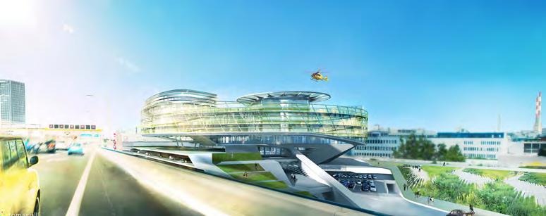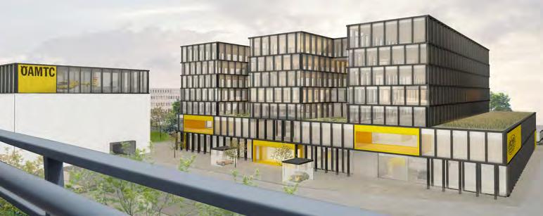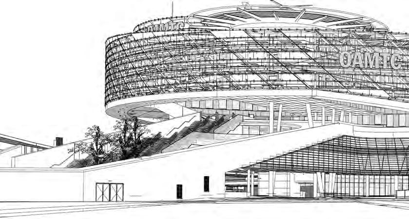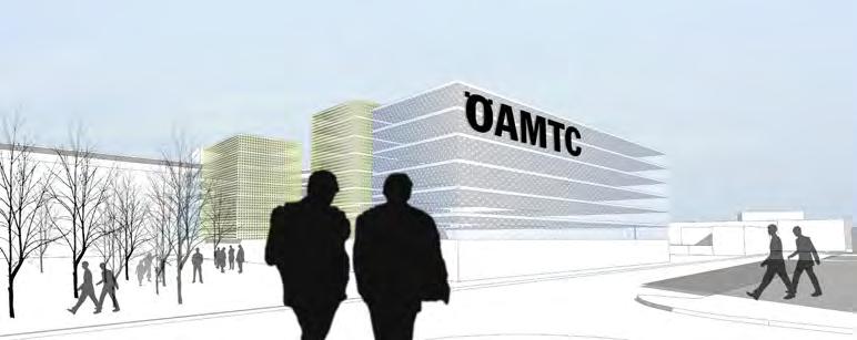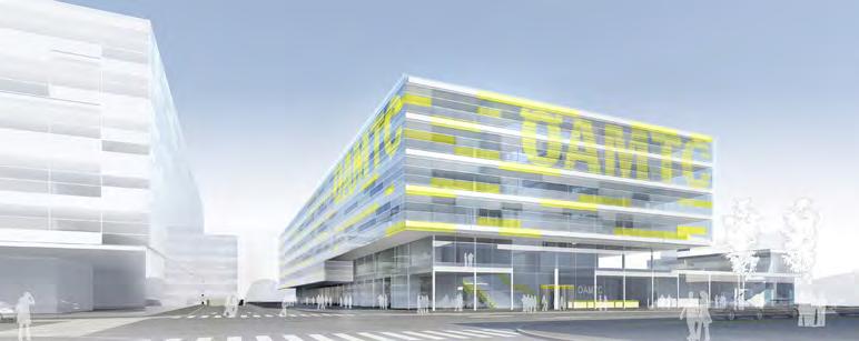 serfüllungen in drei Bauabschnitten großen Wert auf die Schaffung einer sichtbaren Identität des Hauses, die klar die Zukunftsvision des Mobilitätsclubs darstellen sollte. Das wurde von den Planern auf durchaus unterschiedliche Weise interpretiert. Ihre Projekte unterschieden sich vor allem beim Bürohaus-Typ, bei der Verteilung der vielen unterschiedlichen Funktionen, bei der öffentlichen Durchwegung und Aufenthaltsqualität für Kunden sowie bei der Formulierung des geforderten signalhaften Schallschutzes gegen
