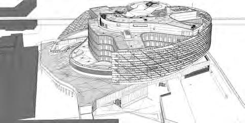 gangssituation. Der Sprung – ein spektakulärer Architekturentwurf, der fast spielerisch die komplexen Bau-Anforderungen in ein schwerelos wirkendes Haus mit Ringfassade, innerem Strahlenkranz und vielen Auskragungen verwandelte. Das Schwimmbecken – der Nachweis der Baubarkeit dieses Entwurfs durch die Berechnungen der Bauingenieure.
