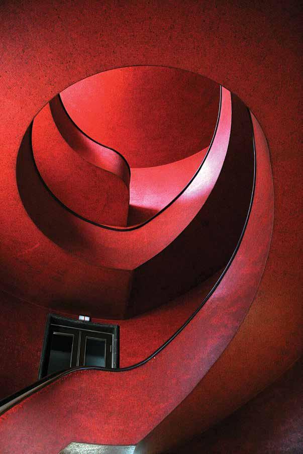 Barragán came out of retirement to design a double town house for the Gilardi family, and the present owner, Martin Luque, allows visitors to immerse themselves in fields of vibrant color as they explore the ground-floor rooms. A gallery with yellow-lined openings opens onto an indoor pool with blue walls and an intense red shaft. A ray of sunlight creates a diagonal accent. The richly grained stone floors resemble wood. A glass door opens onto the central patio, which was built around a jacaranda tree, with a blue wall that merges into the sky, and another of pink. Unrailed, polished wood stairs lead up to a living room that opens onto a little courtyard and a library. At every turn, shutters open to reveal another vista. [2017]