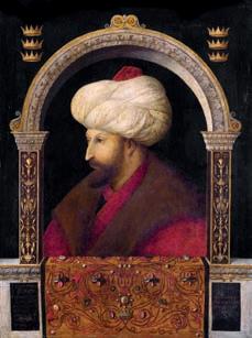 Sultan Mehmed II (1432-1481) who conquered Constantinople in 1453 aged 21, was both fearedand respected in the Christian West, where he wasnicknamed the ‘Grand Turk’. His vast empire laterextended to Greece and the Balkans, and as faras Wallachia on the Danube.
