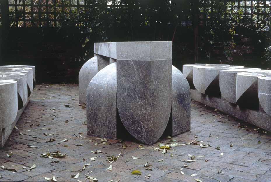 Alongside his studies, De Monchaux continued to extend his terms of reference. During the holidays he was employed at a quarry in Dorset where he produced handmade kerbstones for local footpaths, gratefully accepting offcuts for his own work. Frequent trips to galleries and museums enhanced a growing awareness of his role as a tiny cog in a relentless global progression of creativity. He marvelled at archaic Greek and early Egyptian sculpture in the British Museum, the Auguste Rodin works from the Victoria & Albert Museum on loan to the Tate Gallery, and early Renaissance architecture on a trip to Florence, discerning across time and discipline ‘a common enterprise’.2 On graduation in 1958, De Monchaux accepted a teaching position at the Nigerian College of Arts, Science and Technology in Zaria, Nigeria, where he lived for two years with his wife, the fellow artist Ruth Blackett, and their infant son, Stephen.3 Although the students were keen to learn about Western developments, he organised guided field trips to Jos, Osogbo, Issie, Tada, Benin and Ife, finding exceptional examples of indigenous art to inspire his students. By proxy, this experience extended and enriched his own understanding of sculpture.