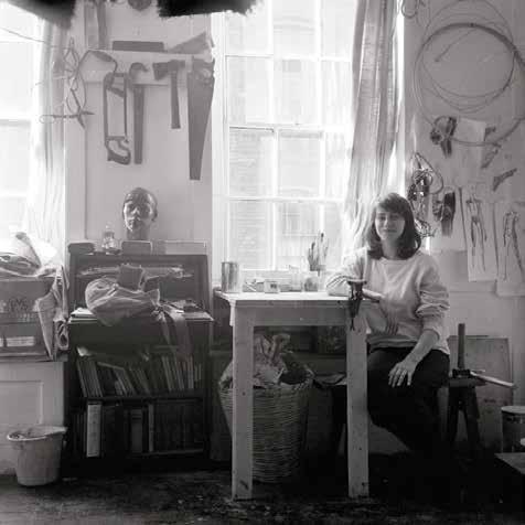 A small reclining River God (1961) writhes on a table with an athletic arch. A clutch of exquisite, perfectly proportioned bronze hands (1962–63) reaches upwards, almost votive, from a workbench. A portrait of his mother, Ellen (1965), peers down from a shelf; one of a pair, ‘she was all face; Dad was all head’. There is shared movement and spontaneity, reinforced through the agile actions of the artist’s hands, pummelling wet clay and plaster into shape. Despite this liberated quality, forms remain independent: either a static head or a restless hand, an upright bust or a reclining motif.4 Gradually, a greater sense of connectivity and conceptual complexity emerged. The catalyst for change appears to have stemmed from De Monchaux’s tender observation of Ruth’s intuitive choice of pose for reflection: her face resting on her hand, her palm and fingers providing the meeting place of thought and action.