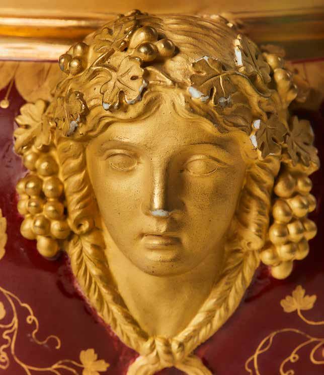 This multi-piece service was produced gradually: each Easter and Christmas the commissioner received the finished pieces. Such a long work period was justified: polychrome hand painting on porcelain was laborious, and the creation of masterfully painted miniature images, which repeated the graphic originals with exceptional accuracy, was time consuming. Wine chillers for the Guryev Service were made before 1815. Each year their themes grew more diverse, and along with vases and decorative plates, they adorned the dinner table at royal parties. In 1848, Nicholas I ordered that this splendid service be transferred to his favourite residence where it has been kept to this day. The Guryev service was used for setting the formal table for those guests who stayed in the Coat-of-arms Wing of the Grand Palace. Unfortunately, porcelain tableware is too fragile, and new pieces were constantly made to substitute for broken ones. Over time the service expanded to include 4,500 pieces. Several kilograms of gold were used for gilding.