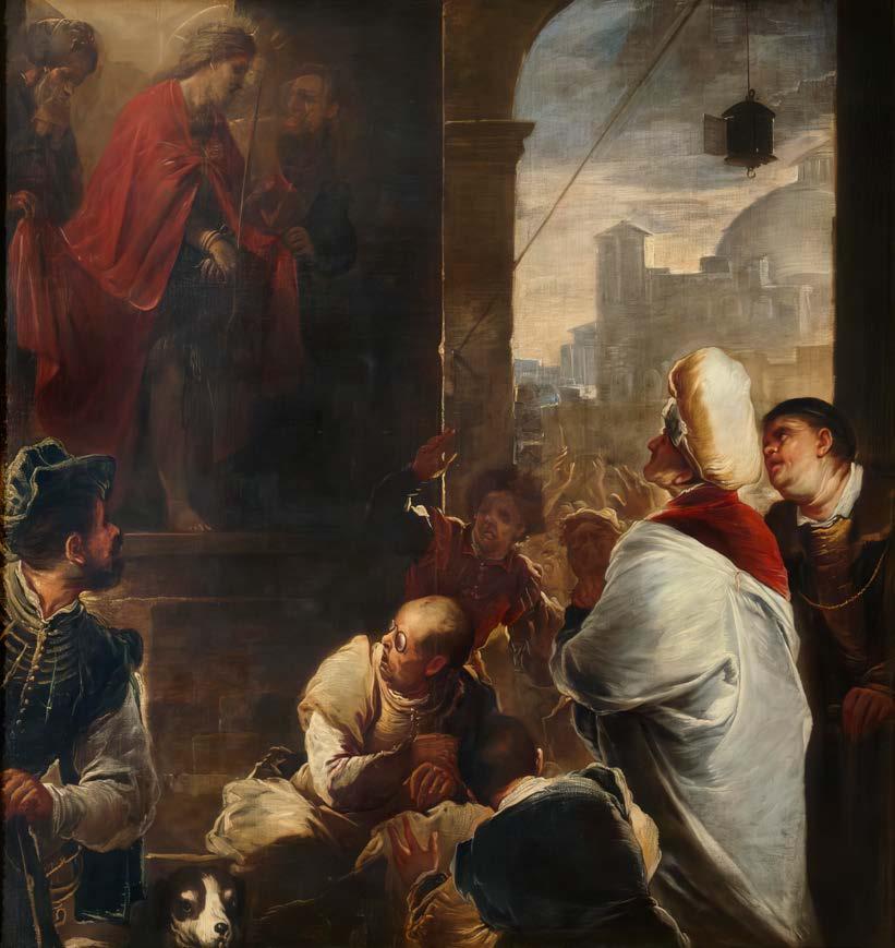 The work reveals figurative influences from the neo-Venetian period and from Mattia Preti. The canvas came to Brera in 1979, through the exercise of the right of preemption on the occasion of an export request. In Baltimore (The Walters Art Museum) there is a further redaction of the theme (a replica of which is in Naples, Museo Nazionale di Capodimonte), dated around 1650-1655, like the pendant with Christ before Pilate (Philadelphia Museum of Art, John G. Johnson Collection). The exemplar from Brera, like its Baltimore predecessor, is a free replica of Dürer’s Ecce Homo, dated c. 1498, belonging to the group of eight early woodcuts reused for the complete series of the Great Passion