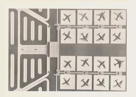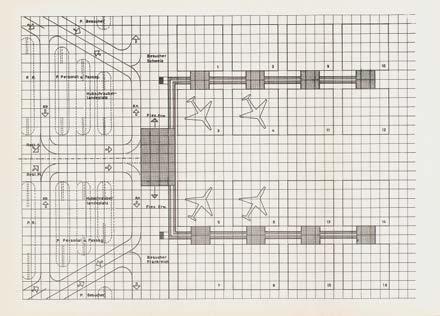 fig. 270–272 Planning a flexible airport, model view, floor plan, regional and local planning with mathematical models, lecturer Herbert Ohl, students Roland Lindner, Winfried Wurm, 1961, diploma thesis, 21 × 29.5 cm (each)