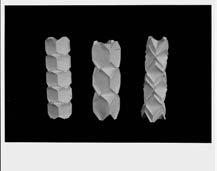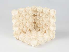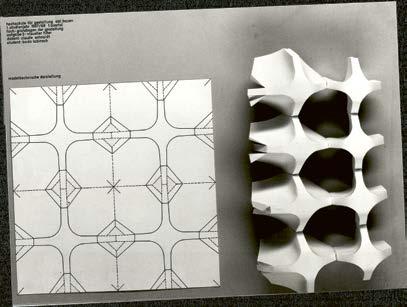 A flat grid was to be used to create a paper honeycomb by means of spatial deformation and contraction. The working material of paper or card was processed by folding, cutting, and gluing to create a honeycomb without any waste. The results comprised axonometric presentations of the previously processed material, as well as models of the completed honeycomb.