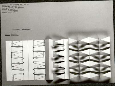 true to scale wooden model. Konrad Wachsmann and his team ultimately assembled a new, voluminous apparatus with sudden changes of direction, which was extensively photographed for documentation purposes.fig. 3