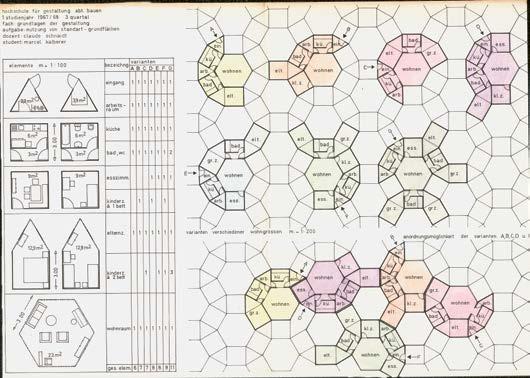 fig. 134 Utilisation of standard floor plans, lecturer Claude Schnaidt, student Marcel Kalberer, 1967–68, 29.7 × 42 cm