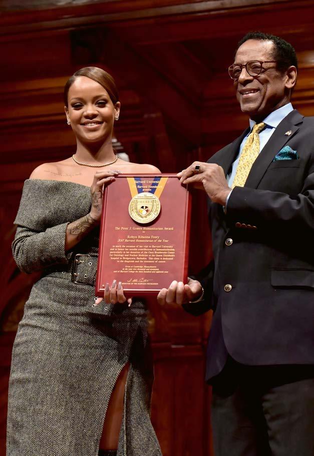 opposite: Rihanna receives her Harvard Humanitarian of the Year Award, February 2017.