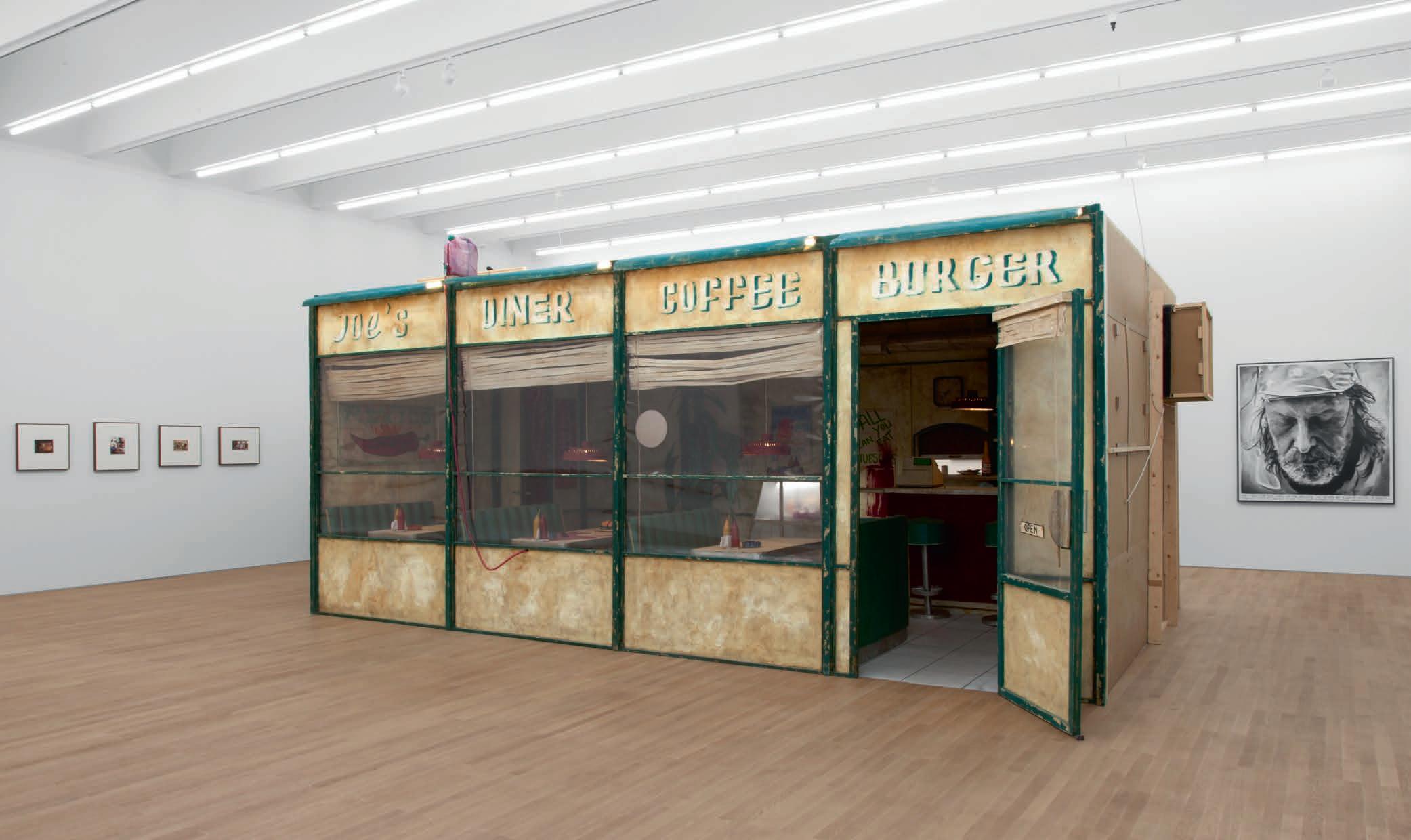 The constructions, such as the car on the mountain, feature as sculptures in his exhibitions. They are memories of a never-lived existence, ghost outlines of a fantasy. That car, for example, is not an exact copy of a car, but a careful reconstruction of the memory of a car. A testimony of an inner world. One that looks robust, but on closer inspection consists of nothing more than cardboard, in colours only possible through the workings of time. Tarnished red, tarnished blue, tarnished yellow.