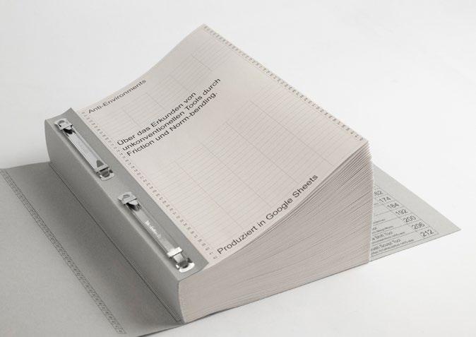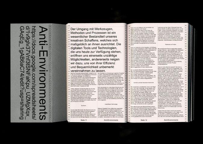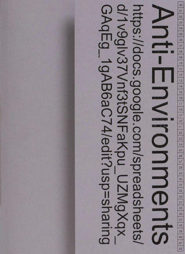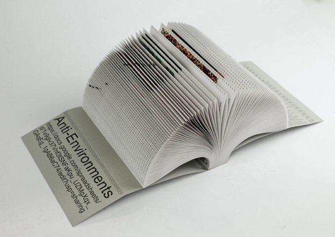 Borchardt’s visionary book is itself such an “anti-environment,” produced entirely in Google Sheets and avoiding conventional design programs. In this way, he demonstrates an alternative hybrid publishing approach, allowing readers to print a work from the internet and bind the volume themselves.