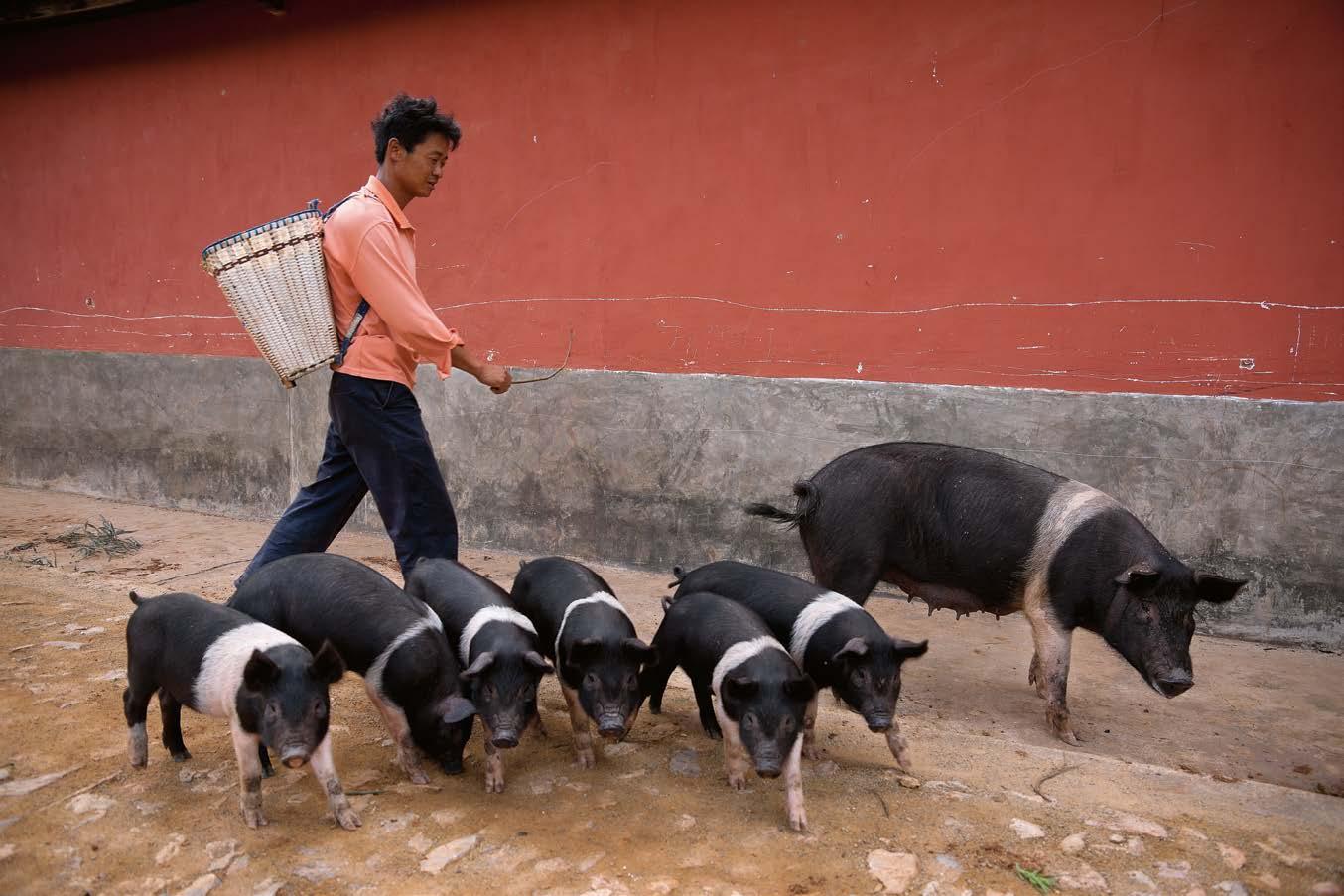 • 44-45 a man B rings his sow and her family to market along the same road through s haxi that was traveled B y the tea and horse traders of centuries ago