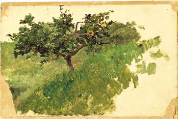 According to the family accounts book preserved at the Museo Sorolla in Madrid (inv. DA/460), this work, whose current whereabouts are unknown, was sold for 1,000 pesetas at the Biennial Exhibition of the Circle of Fine Arts of 1893 in Madrid. It was acquired by the Queen Regent, Maria Christina of Habsburg, as recorded in an entry of the Archivo General de Palacio, Madrid, Administración, leg. 40, exp. 105. However, no work of these characteristics is known at that date. All Sorolla’s studies of orange trees are much later.