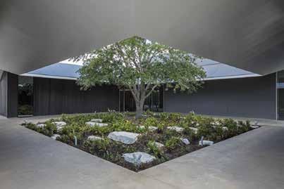 The Menil Drawing Institute (MDI) is sited within the 30 acre campus of The Menil Collection. Positioned in the geographic center of the campus, the MDI is adjacent to the Cy Twombly Pavilion and nested among the historic bungalows that make up the fabric of this neighborhood of art. The design of the MDI honors the legacy of intimacy and direct engagement with art that underlies the domestic and institutional character of the Menil campus. Situated in a park-like setting, the new building assumes the scale of both a house and a museum, with a low-lying, elongated profile that blends with the architecture of the historic campus while signaling a new dimension for future growth.