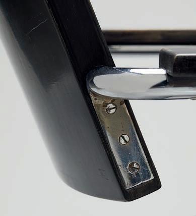der nun als ST3 vermarktete Stuhl. Im Vertrieb des KarstadtKonzerns, mit dem Lengyel ab Sommer 1931 kooperierte, wurden ehne und it che der tühle schwar ge ei t und anpoliert , das tahlrohr erchromt ange oten erlie erte emplare des tuhls ariieren entsprechend der immer wieder angepassten Produktion. Die Form der ückenlehne war ei a e p a mehr kon e , kissenartig und die rmlehn acken kur ausge ührt Beim on Thonet ist die Lehne konkav gebogen und nur im unteren Bereich mit kur er etallleiste erschrau t, die rmlehn acken erscheinen ü er den ohrknick hinaus erl ngert n der Preisliste des a e Prospekts finden sich keine nga en um erwendeten ol oder der ackierung, es handelt sich a er o ensichtlich um eine schwar e Fassung on honet wurde der tuhl in wei ersionen wischen und ange oten mit it und ückenlehne in chwar und als ersion mit hell ge ei tem perrhol und Buchenhol rmlehnen ie schwar e us ührung ist eispielsweise im atalog Thonet Stahlrohrmöbel (1935) abgebildet.14 ort findet sich auch ein inweis au den chut als e rauchsmuster 15 |Abb. 7.12 n ammlungen ha en sich or allem us ührungen des tuhls in chwar erhalten, so eispielsweise im eipiger rassi useum als ersion on a e, p a, n r und im useum ugust estner, anno er rmlehnsessel on , ersteller e r honet, n ane en finden sich erein elt helle ersionen wie das Exemplar des ST3 in der Sammlung des Vitra Design useums, eil am hein 16 wei rühe Belegstücke ür die ersion p a on a e sind als us ührung in Birke, grau poliert“ mit dem Arbeitszimmer Dr. Hans Priewe vom Juli im Bauhaus rchi Berlin erhalten 17 |Abb. 7.13 er rmlehnstuhl geh rte u eng els Bestsellern, wie auch seine i en a rechnungen mit elegen ort wird ür die ahre a or allem dieser tuhl genannt