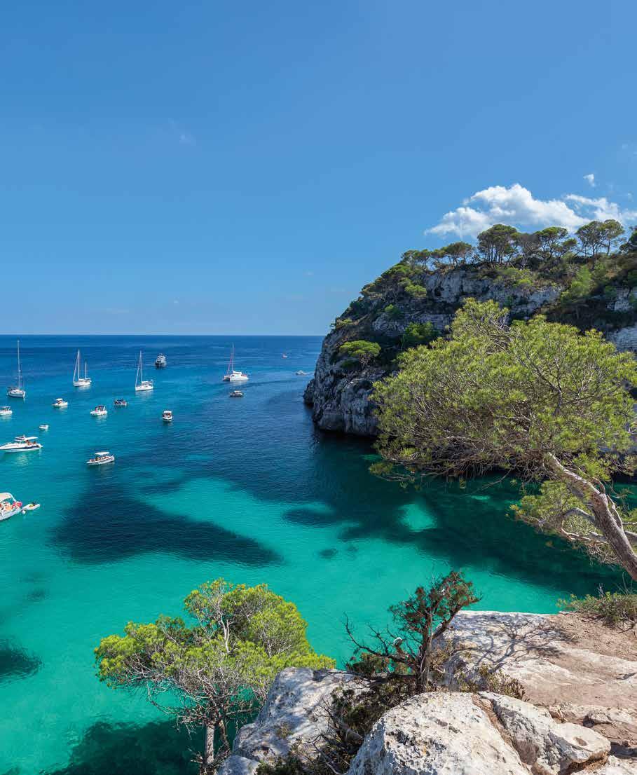Is there a better way to welcome the rising sun than standing on a paddleboard, arms raised in salute, floating in a tranquil cove in the Mediterranean Sea? This spectacular experience –and many more – can be found in the seaside town of Fornells, a water sports hub in the north of Menorca.