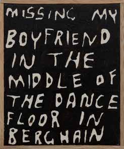 Already enjoying huge international success, this young artist uses very simple materials (canvas, wooden frames, wall and roof paint) and stripped-down colors to express his thoughts on gender and sexuality in a riveting manner. Born in Zimbabwe, Brett Charles Seiler plays around with the supposed ideals of masculinity. His works depict intimate, lonely, or vulnerable situations, and he often uses words pointedly, for example, in his strictly typographic piece “This is a gay painting.”