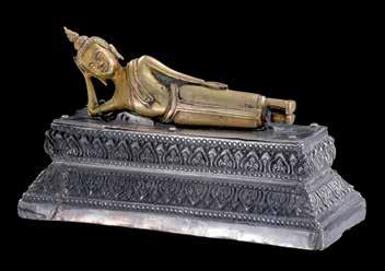 6.01 A reclining Buddha in silver gilt on a silver plinth, 19th century.