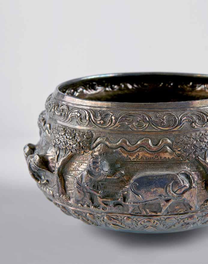 Unlike Indian, Burmese and Malay silver, each of which is more familiar to Europeans thanks to the British colonisation of those countries in the 19th century, little is generally known about Thai silverware. The main reason is that it is generally not found, or appreciated, outside of Thailand, as relatively few silver objects were exported to Europe (or elsewhere) compared to Burmese, Malay, Indian, and even Cambodian, silver wares, which are still routinely found for sale in the British and French antiques marketplace. Given their colonisation, there was greater historical trade and social interaction between Europe and these countries in the 19th century and the first half of the 20th century; and in the case of Indian and Burmese silver, at least, the Indian colonial government actively promoted Indian silver domestically, namely in the exhibitions of Calcutta (18831884), Jaipur (1883) and the Delhi Durbar (1903), in an effort “to arrest the decline of ‘traditional arts’, and to uplift the market for Indian commodities.”1