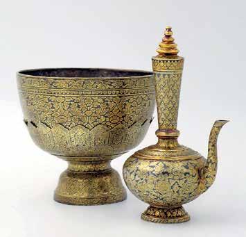 6.21 An unusual gilded silver niello water bottle with spout, together with a gilded silver niello bowl and stand, 19th century.