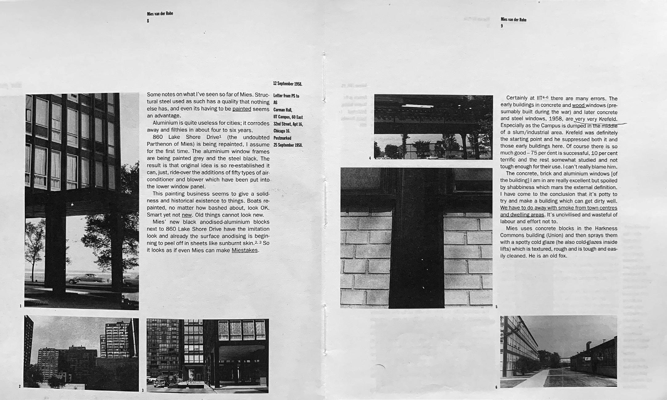 17 Beatriz Colomina, “Brutalism and War,” in Brutalism: Contributions to the international symposium in Berlin, 2012, Park Books, 2017, 24. More than anyone else, Colomina has recognized the importance of the Smithson-Mies connection in numerous essays. See especially “Couplings,” in “Rearrangements, A Smithson Celebration,” OASE 51 (June 1999): 22-33.