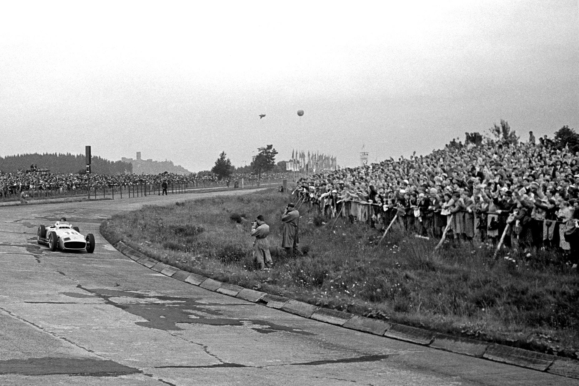 It's debatable which Grand Prix attracted the biggest race day crowd. The 2000 United States Grand Prix, the first race at the Indianapolis road course, had some 250,000 spectators and this is the ‘official record’. But the 1954 German Grand Prix at the Nürburgring probably had an even bigger crowd. It was impossible to control or count the spectators on the 22.8 km long circuit in the Eifel mountains, but at the time it was sug-