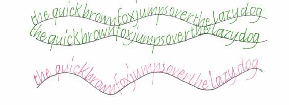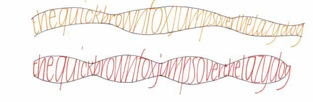 Draw two wavy lines that are neither parallel nor specular: this time, fill the space between the two lines by adapting the shape of the letters to the curves.