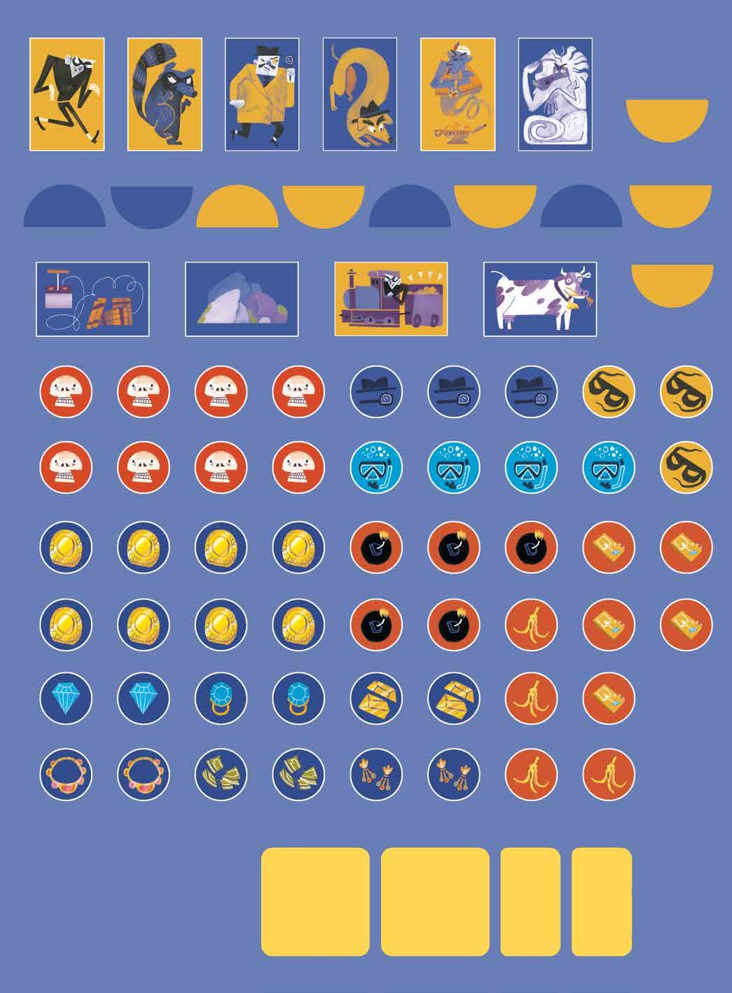Players can move in any direction. Each time you land on a token, you must evaluate what the token has in store for you: if it’s a loot token, you can hold on to it and roll the die again, continuing along your way. If you land on a trap token (a bomb or a banana peel), you have to sit out for a turn. When you think you’ve collected enough loot, try to get back to the starting point faster than your opponents. But be careful! You have to land on the home base with an exact roll (otherwise you have to go back the number of spaces in excess). Whoever transports the most loot to the starting point wins. Choosing a path that will get you the most tokens possible from those scattered throughout the museum is key.